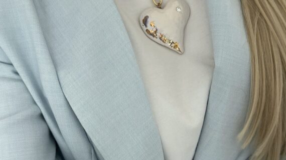 Rankų darbo unikalus keramikos pakabukas širdis – spalva balkšva